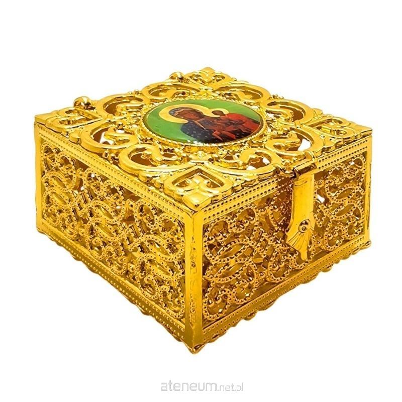 Pudełko na różaniec Matka Boża Częstochowska złote