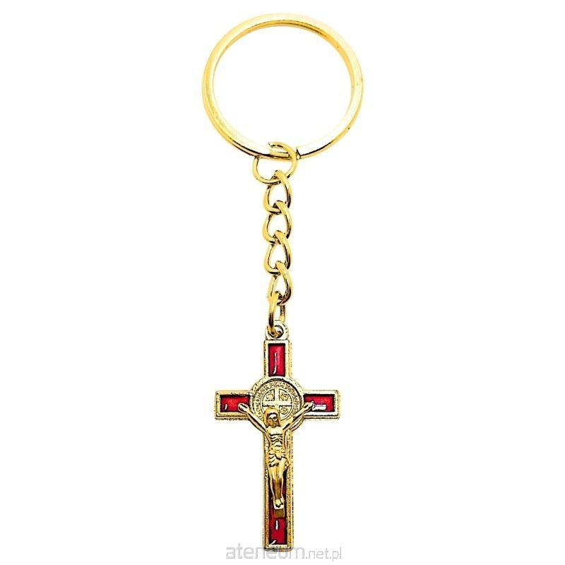 Elegancki i pełen znaczenia brelok z Krzyżykiem Świętego Benedykta. Wykonany w kolorze złotym, przyciąga wzrok swoim wyrafinowanym wyglądem. Centralnym elementem jest krzyż Świętego Benedykta o wymiarach 39x22 mm, którego tło wypełnione jest głębokim, czerwonym kolorem, tworząc piękny kontrast ze złotą ramką i detalami. Na krzyżu umieszczona jest złota pasyjka, dodająca mu sakralnego charakteru. Ten stylowy brelok to nie tylko praktyczny dodatek do kluczy, ale również potężny symbol ochrony przed złem, zgodnie z tradycją związaną z medalikiem Świętego Benedykta.