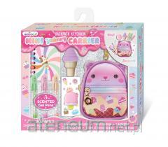 Zestaw zapakowany w przezroczystą saszetkę z dwoma przegródkami zamykanymi na zamek. Dodatkowo sznureczek i kolorowy pompon. W saszetce przesypują się holograficzne mini-ozdoby dla dodatkowego efektu. Wiek: 5+