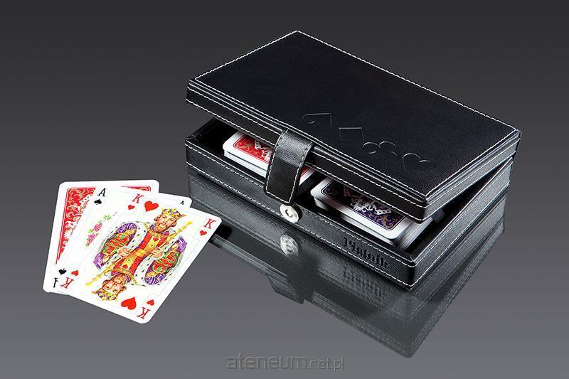 Najwyższej jakości karty do gry renomowanej firmy Ferd. Piatnik & Sohne. Eleganckie, poręczne etui z ekoskóry zawiera 2 talie "Luxury" oraz bloczek do zapisu brydżowego. "Luxury" to prawdziwa esencja kart, sztandarowy wzór Piatnika, znany w Polsce od lat przedwojennych. Na awersach jedyne w swoim rodzaju Piatnikowskie figury. Rewersy są nie tylko szlachetne, ale także symetryczne i wyraźnie różniące się od siebie. Cechy te sprawiają, że to doskonałe karty dla wszystkich, od początkujących po wytrawnych graczy. Ponadto, samo etui prócz estetycznych, ma również walory praktyczne. Dzięki odpornemu tworzywu i solidnemu zapięciu ułatwione jest podróżowanie z kartami. Talie składają się z 55 plastikowanych kart o gramaturze 310 i nieco większych niż standardowe wymiarach 62 x 91 mm. Idealne zarówno do brydża, pokera, remika jak i innych gier. Wyroby wiedeńskiej fabryki Ferd. Piatnik & Sohne od 1824 roku urzekają bogactwem wzorów i perfekcją wykonania. Jakość i tradycja!
