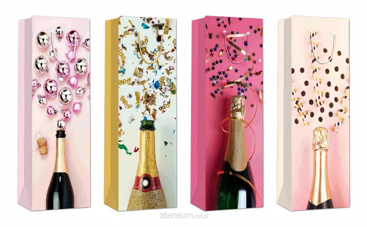 Torebka ozdobna na butelkę 12x36x9cm mix ROZETTE