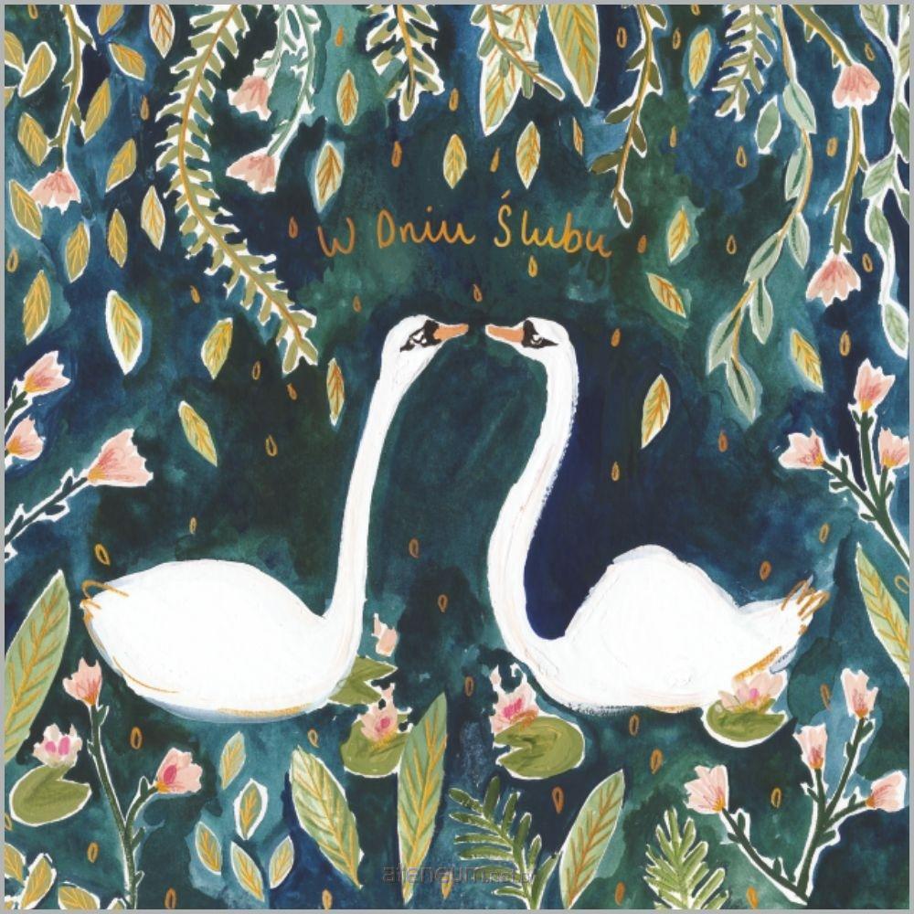 Karnet ślubny z kopertą, złocony, tekst życzeń w środku.