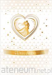 Karnet ślubny z kopertą, złocony, tekst życzeń w środku.