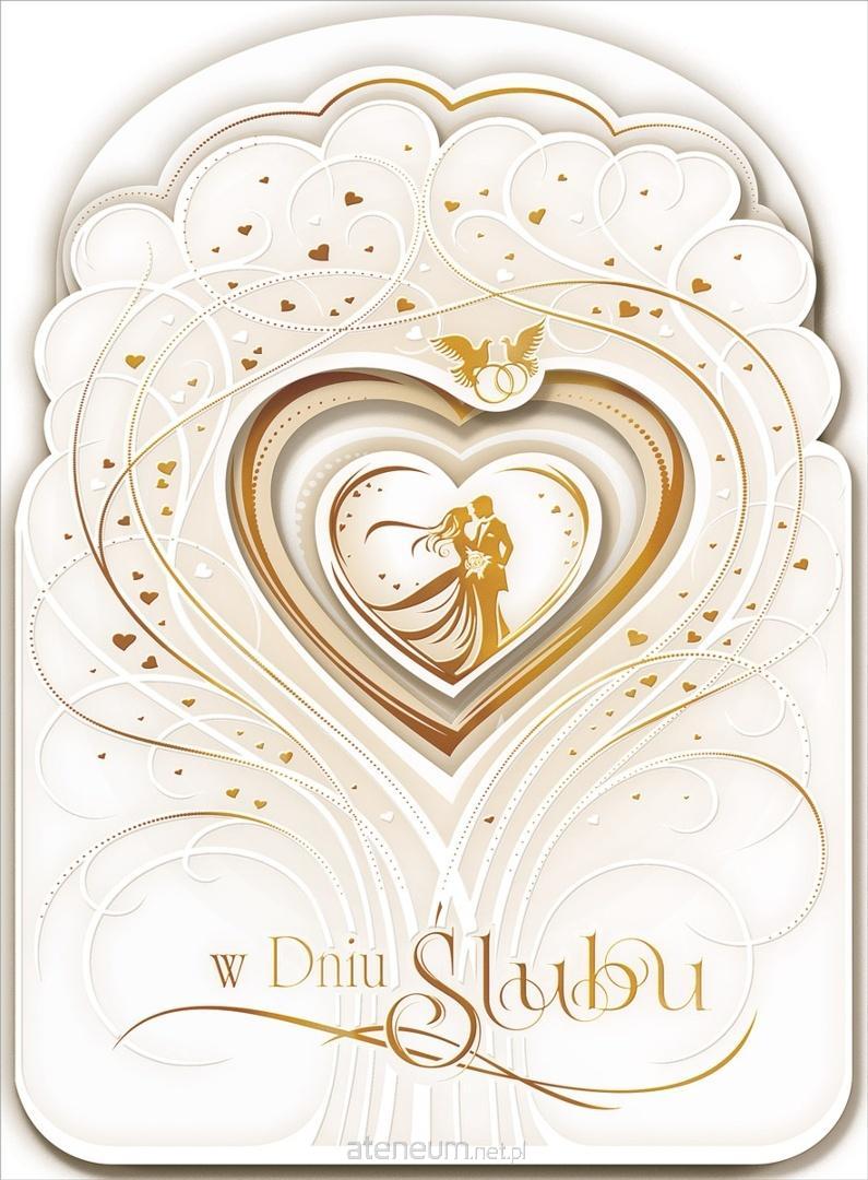 Karnet PREMIUM, złocony i tłoczony, naklejane elementy, tekst życzeń w środku.