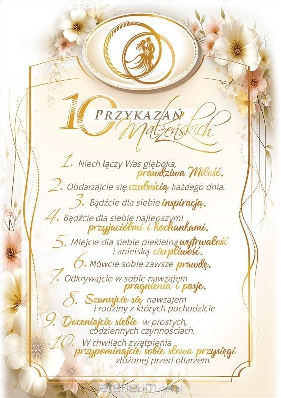 Karnet ślubny z kopertą, naklejane elementy, złocony, tekst życzeń w środku.