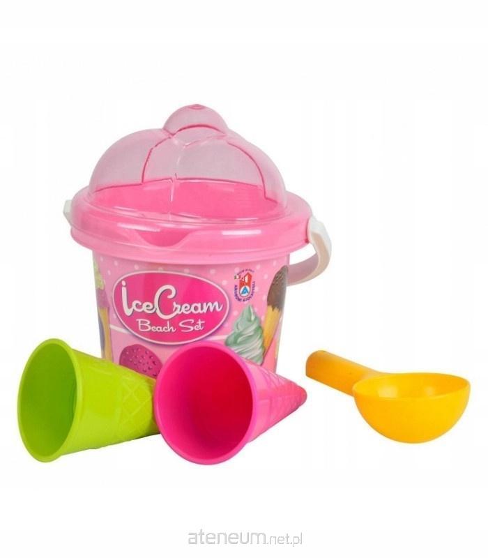 4 elementy: wiaderko z pokrywką, 2 rożki do lodów, łyżka
