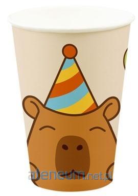 Kubki papierowe z motywem kapibary to modny i radosny element dekoracyjny, który doskonale wpisuje się w aktualny trend popularności kapibar. Autorski wzór przedstawiający kapibarę w czapeczce party na jasnym tle nadaje kubkom lekki, humorystyczny charakter i sprawia, że są one wyjątkowo lubiane przez dzieci i dorosłych. Pojemność 200 ml czyni je praktycznym wyborem na przyjęcia urodzinowe i spotkania tematyczne.