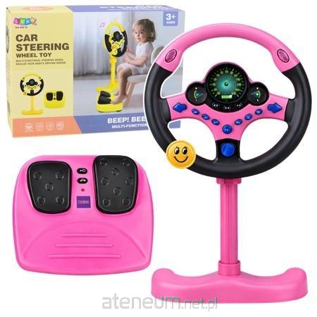 INTERAKTYWNA KIEROWNICA DLA DZIECI RÓŻOWA Z PEDAŁAMI DŹWIĘKI ŚWIATŁA