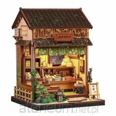 Produkt składa się z gotowych, malowanych elementów drewnianych, umieszczonych na planszach - składanie domku polega na umieszczeniu elementów drewnianych w otworach konstrukcji domku, wg kroków wskazanych w instrukcji. Niewielka ilość elementów papierowych (książek) wymaga wycięcia i sklejenia