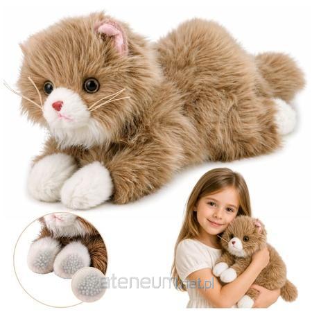 Dodatkowym atutem są kuleczki obciążające umieszczone w łapkach, które sprawiają, że maskotka stabilnie leży i jeszcze lepiej dopasowuje się do pozycji podczas przytulania. To sprawia, że pluszowy kot jest jeszcze bardziej realistyczny i funkcjonalny.