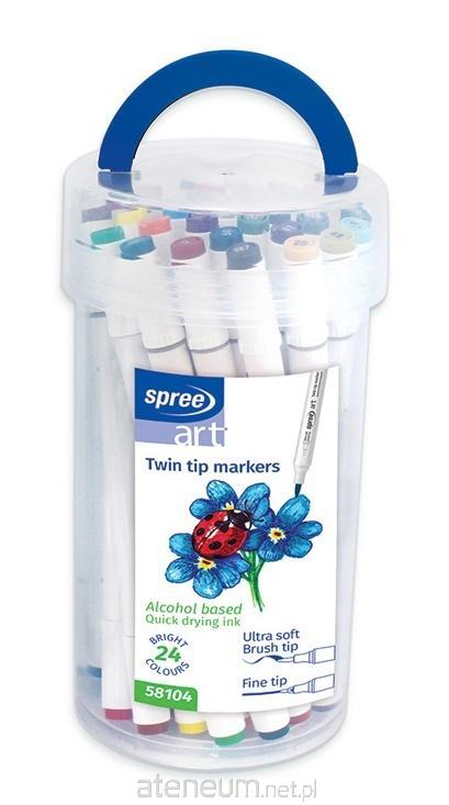 Flamastry dwustronne pędzelkowe Spree 24 kolory