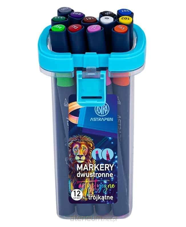 Markery artystyczne trójkątne dwustronne ASTRAPEN - 12 kolorów - pędzelkowa i ścięta końcówka