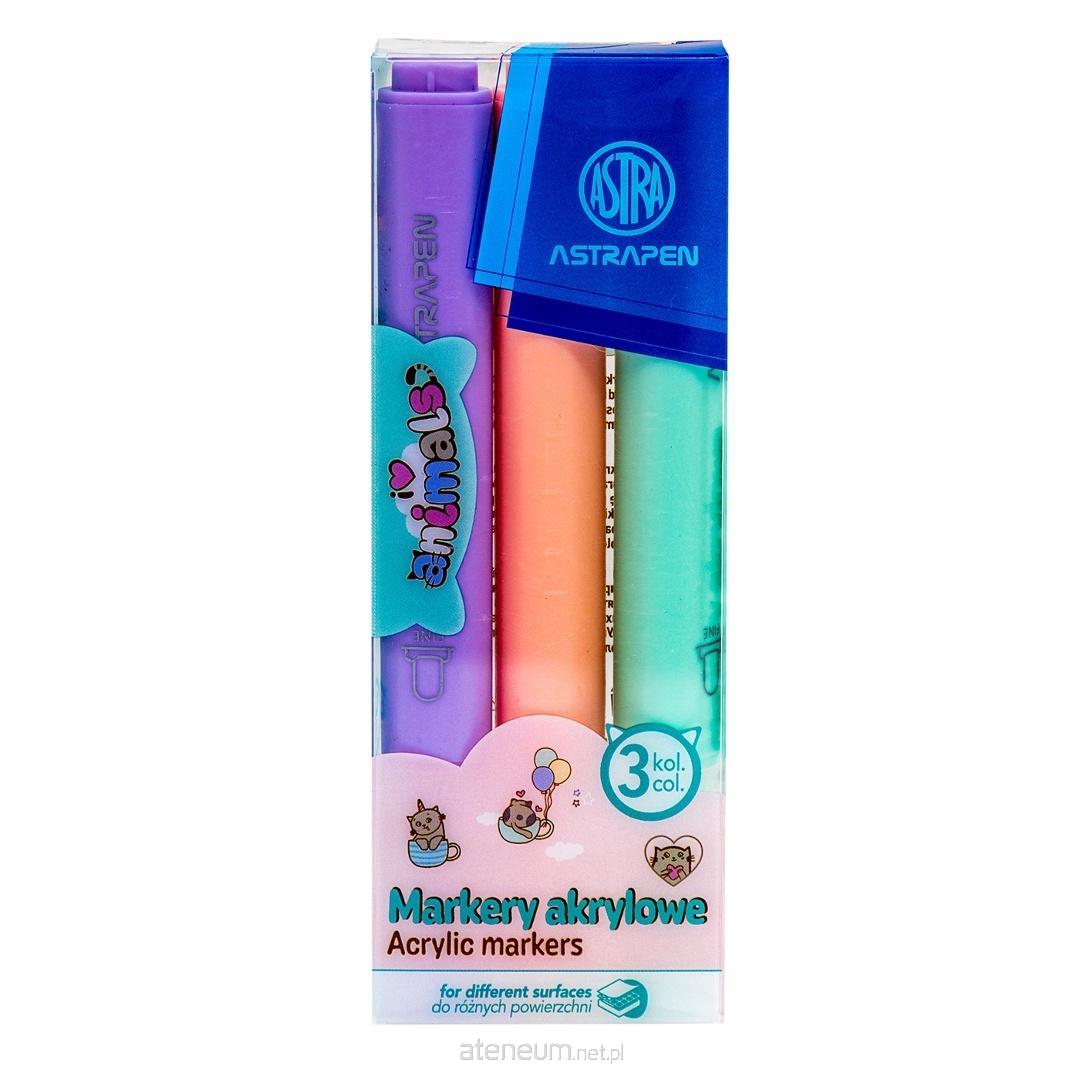 Markery trójkątne akrylowe ASTRAPEN ANIMALS -3 kolory PET box