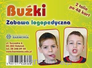 "Buźki" to zabawa logopedyczna dla dzieci w wieku przedszkolnym i wczesnoszkolnym, wspomagająca naukę prawidłowej wymowy i usprawnianie narządów artykulacyjnych: żuchwy, warg, języka, podniebienia, policzków. Zabawa składa się z dwóch talii po 48 kart. Awers każdej karty to fotografia, na której dziecko prezentuje "buźkę" (określony układ logopedyczny), na rewersach znajdują się krótkie polecenia. Jedną talię kart otrzymuje dziecko, drugą osoba z nim pracująca. Ćwiczenia polegają na pokazywaniu (zgodnie z poleceniem i fotografią) oraz odgadywaniu "buziek". Karty mogą być cenną pomocą dla logopedów, pedagogów, nauczycieli, a także rodziców dbających o prawidłowy rozwój mowy swoich dzieci.