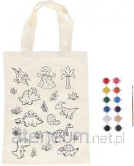 Torba płócienna do kolorowania z farbkami - Dino