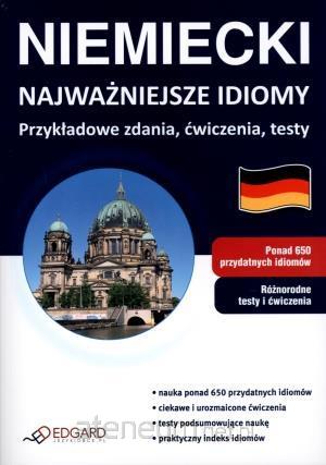 Niemiecki Najważniejsze idiomy Przykładowe zdania, ćwiczenia, testy umożliwia poznanie ponad 650 wyrażeń idiomatycznych niezbędnych do swobodnego i błyskotliwego porozumiewania się w języku niemieckim. Praca z książką bazuje na metodzie aktywnej nauki w oparciu o zestaw 90 różnorodnych ćwiczeń. Książka adresowana jest do osób posługujących się językiem niemieckim na poziomie średnio zaawansowanym (B1-B2 wg klasyfikacji Rady Europy), które chcą poszerzyć czy urozmaicić swój zasób słownictwa oraz posługiwać się żywym, współczesnym językiem. Szczególnie polecana jest osobom przygotowującym się do matury rozszerzonej z języka niemieckiego oraz do egzaminów językowych Goethe Zertifikat B1, B2 i TestDaF. Idiomy uporządkowano w 30 rozdziałach tematycznych. Znaczenie każdego z nich zostało zilustrowane zdaniem, co ułatwia zapamiętanie wyrażeń i jest pomocne podczas powtórek przed egzaminami czy testami. Dodatkowo w książce umieszczono indeks idiomów według słów kluczowych. Podręcznik zawiera urozmaicone ćwiczenia, które uczą praktycznego i swobodnego posługiwania się idiomami. W każdej lekcji znajduje się kilka rodzajów ćwiczeń, m.in. uzupełnianie zdań, łączenie wypowiedzi w pary, krzyżówki i węże literowe. Podsumowaniem nauki są znajdujące się na końcu książki testy przekrojowe, sprawdzające znajomość zwrotów idiomatycznych. Wszystkie wyrażenia w książce zostały przetłumaczone na język polski.