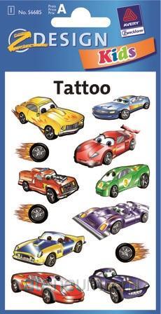 - blister, zawierający 12 tatuaży z motywem samochodów.
