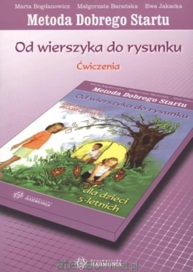 Od wierszyka do rysunku to program Metody Dobrego Startu oparty na materiale nieliterowym (24 abstrakcyjne wzory ułożone według stopnia trudności). Przygotowany z myślą o dzieciach w wieku przedszkolnym (5-latkach) wszechstronnie wspomaga ich rozwój psychoruchowy, przygotowuje do nauki pisania. Ćwiczenia-zabawy przedstawione w tym programie można stosować w celu profilaktyki niepowodzeń szkolnych (przez korygowanie zaburzeń funkcji wzrokowo-przestrzennych, słuchowo-językowych, ruchowych oraz ich współdziałania), kształtowania lateralizacji oraz orientacji w schemacie ciała i w przestrzeni. Publikacja składa się w dwóch teczek, do kupienia osobno. W zestawie pomocy dydaktycznych znajdują się 24 wzory, 24 kolorowe ilustracje oraz broszura ze wskazówkami metodycznymi. Natomiast w teczce dla dziecka są 72 karty pracy: po trzy do każdego wzoru. Karty pracy zostały przygotowane w sposób odpowiedni dla małych dzieci: zawierają duże elementy, których ilość na jednej karcie jest niewielka, co ułatwia dziecku ich postrzeganie oraz pracę z ich wykorzystaniem.