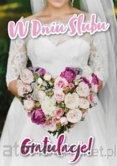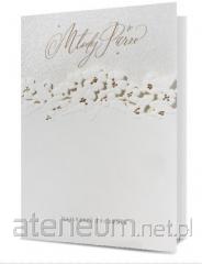 Wielostronicowa pamiątka ślubna w twardej oprawie. Z miejscem na fotografię nowożeńców, ich imiona, datę zwarcia małżeństwa. Pamiątka zawiera fragmenty Pisma Świętego, słowa papieży: Jana Pawła II i Franciszka oraz wiele innych godnych zapamiętania cytatów dotyczących małżeństwa i miłośc