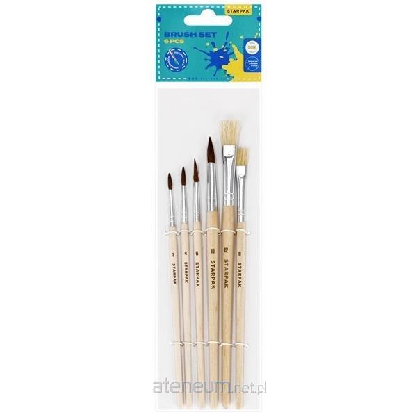 Zestaw 6 pędzli o końcówkach "w szpic" i płaskich, z włosia naturalnego. Umożliwiają uzyskanie różnorodnych efektów malarskich. Posiadają znak CE.