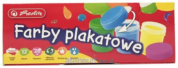 Farby plakatowe 12 kolorów, nietoksyczne, zmywalne. 12x 20ml.