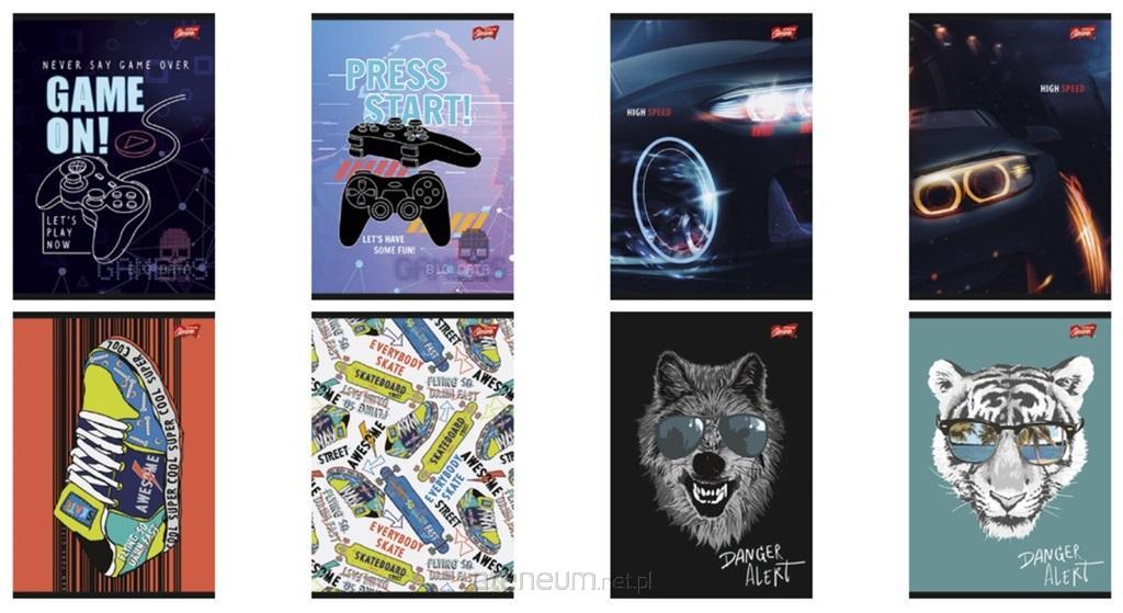 Zeszyt laminowany A5, linia podwójna dwukolorowa, 32 kartki, mix wzorów, 15 sztuk w opakowaqniu zbiorczym. Zeszyty Unipap charakteryzuje wysoka jakość papieru, estetyczne wykończenia, modna grafika okładek. Okładka kredowa z zadrukiem wewnętrznym o gramaturze 250 g/m2 wykorzystuje najnowsze motywy wzornicze UNIPAP.