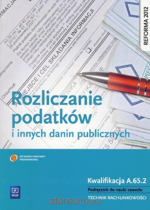 Podręcznik do nauki zawodu technik rachunkowości realizujący treści z zakresu części drugiej kwalifikacji A.65 (Rozliczanie podatków i innych danin publicznych). Przeznaczony jest dla uczniów szkół policealnych. Prezentuje wiadomości dotyczące m.in.: funkcjonowania finansów publicznych, dochodów i wydatków budżetu państwa i budżetów samorządów terenowych, systemu podatkowego, zasad rozliczania poszczególnych podatków, a w szczególności podatków dochodowych, podatku VAT, akcyzy i pozostałych podatków.