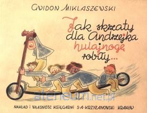 `Jak skrzaty dla Andrzejka hulajnogę robiły` to reprint książeczki dla dzieci, którą w roku 1943 napisał i pięknie zilustrował Gwidon Miklaszewski, znany rysownik, karykaturzysta i twórca filmów animowanych. Przed skrzatami zadanie nie lada budowa hulajnogi dla Andrzejka. W ruch idą narzędzia stolarskie, prężą się skrzacie muskuły i leje się pot. Ale co to? Piąty skrzacik nie pomaga ciągle śpi, w rączce ściskając bacik! Czy uda się przygotować, i to w tajemnicy, taki prezent, gdy pracuje tylko czterech braci? Oj, zdziwi się piąty skrzacik ten, co ciągle śpi. Jego też czeka niespodzianka