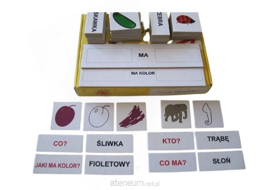 Zestaw ten składa się z dwóch oddzielnych zestawów ćwiczeniowych (Co ma? i Jaki ma kolor?)