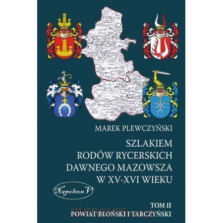 W drugim tomie naszego cyklu Szlakiem rodów rycerskich dawnego Mazowsza w XV-XVI wieku zapraszamy na tereny leżące nieco dalej na zachód od Warszawy. Są to historyczne powiaty tarczyński i błoński, które pojawiły się na mapie nowego podziału administracyjnego związanego z reorganizacją sądownictwa mazowieckiego w końcu XIV w. Właśnie w Tarczynie i Błoniu zatrzymywał się sąd książęcy złożony z sędziego, podsędka i lokalnych urzędników, a okolice tych najznaczniejszych ośrodków na zachód od Warszawy utworzyły powiaty. Sam termin wywodził się od dnia wietnego, czyli wiecu zgromadzenia sądowego o z góry zapowiedzianym terminie. W Błoniu oddzielny zarząd majątkiem władcy spoczywał od XV w. w ręku starosty niegrodowego. W wędrówce naszej będziemy się posuwać z północy na południe zatrzymując się w sześciu gniazdach rycerskich rodów rozproszonych na stosunkowo niewielkim obszarze obu powiatów. Stąd i niniejszy tom ma mniejszą objętość niż pierwszy, poświęcony dwu i półkrotnie ludniejszemu powiatowi warszawskiemu. Zawiera szkice dotyczące 15 osób, w tym 3 urzędników, 8 towarzyszy i 4 rycerzy. W wypadku Pilików ze Skuł cofnęliśmy się nawet do lat 80 i 90-tych XIV w. ze względu na wyjątkowość tych postaci reprezentujących mazowiecką wojskowość późnego średniowiecza. Użyte metody i tematyka mieszcząca się w sferze historii wojskowej, regionalnej i turystyki historyczno-wojskowej określone zostały we wstępie do tomu pierwszego. Należy jednak zwrócić uwagę, że brakuje w omawianej grupie rotmistrzów zaciężnych. Kwalifikowani do omówienia przed podjęciem głębszych badań Janusz Święcicki i Jan Zaborowski okazali się bowiem osobami nie związanymi z powiatem błońskim. Przypadki te świadczą o dużych trudnościach przy identyfikacji żołnierzy jazdy zaciężnej. W lepszej sytuacji są badacze piechoty, ponieważ służący w tym rodzaju wojska kombatanci mieli najczęściej zaznaczone swe pochodzenie w rejestrach popisowych.