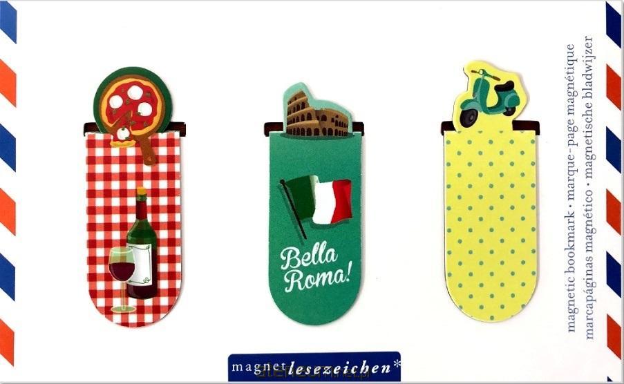 Zakładki magnetyczne - Rzym. Pięknie ilustrowane zakładki z wystającymi, ozdobnymi elementami. Idealne do zaznaczania ostatnio czytanych lub ulubionych fragmentów książek. Doskonale sprawdzają się w indeksowaniu notatek, dokumentów w biurze, w szkole i w domu. Każdy zestaw zawiera 3 zakładki o różnych wzorach. Trzy zakładki magnetyczne w zestawie są tematycznie skoordynowane. Skomponuj własną kolekcję z zakładkami: Londyn, Nowy York.