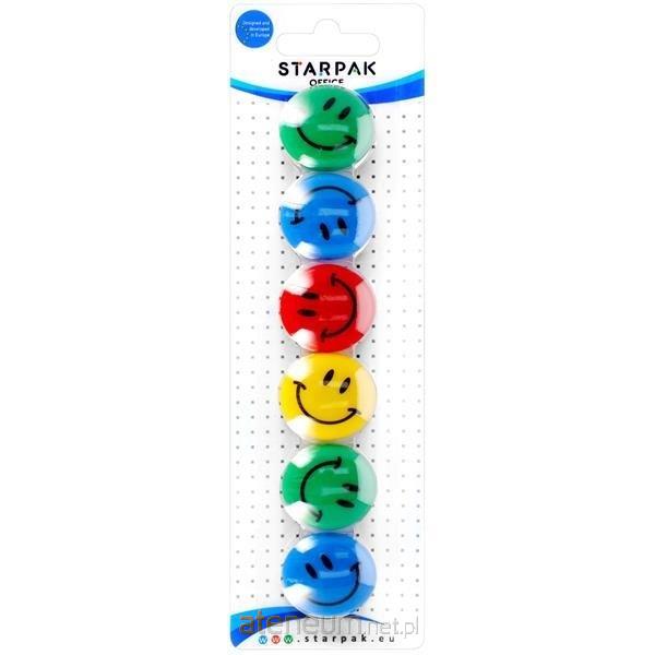 Zestaw mocnych magnesów w plastikowej obudowie w czterech kolorach o średnicy 30 mm. Każdy magnes posiada uśmiechniętą buźkę. Przydatne w biurze, domu oraz pracy. Zapoznaj się również z innymi produktami Starpak dla biura. Magnesy pakowane na blistrze po 6 szt. Wykonane z plastiku. Produkt przeznaczony dla dzieci w wieku: 3+.
