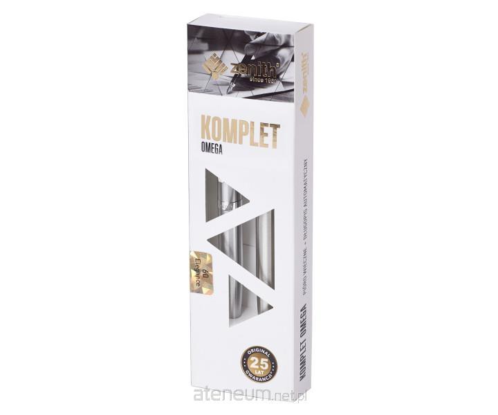 Eleganckie metalowe pióro wieczne i metalowy długopis Silver. Stalówka zakończona irydową kulką dla zapewnienia doskonałej jakości i łatwości pisania. Wymienne naboje atramentowe. Wymienny wkład wielkopojemny Zenith 4 z dokumentalnym tuszem w kolorze niebieskim gwarantującym trwałość zapisu. Długość linii pisania 4500 metrów. Kolory: srebrny