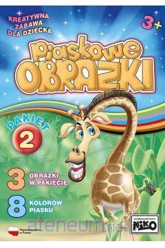 Piaskowe obrazki to kreatywna zabawa dla dzieci, polegająca na tworzeniu barwnych ilustracji z piasku. Każdy zestaw zawiera trzy obrazki, woreczki z kolorowym piaskiem oraz patyczek, za pomocą którego odkrywamy klejącą warstwę ilustracji. Przy tej zabawie wyobraźnia nie zna granic!