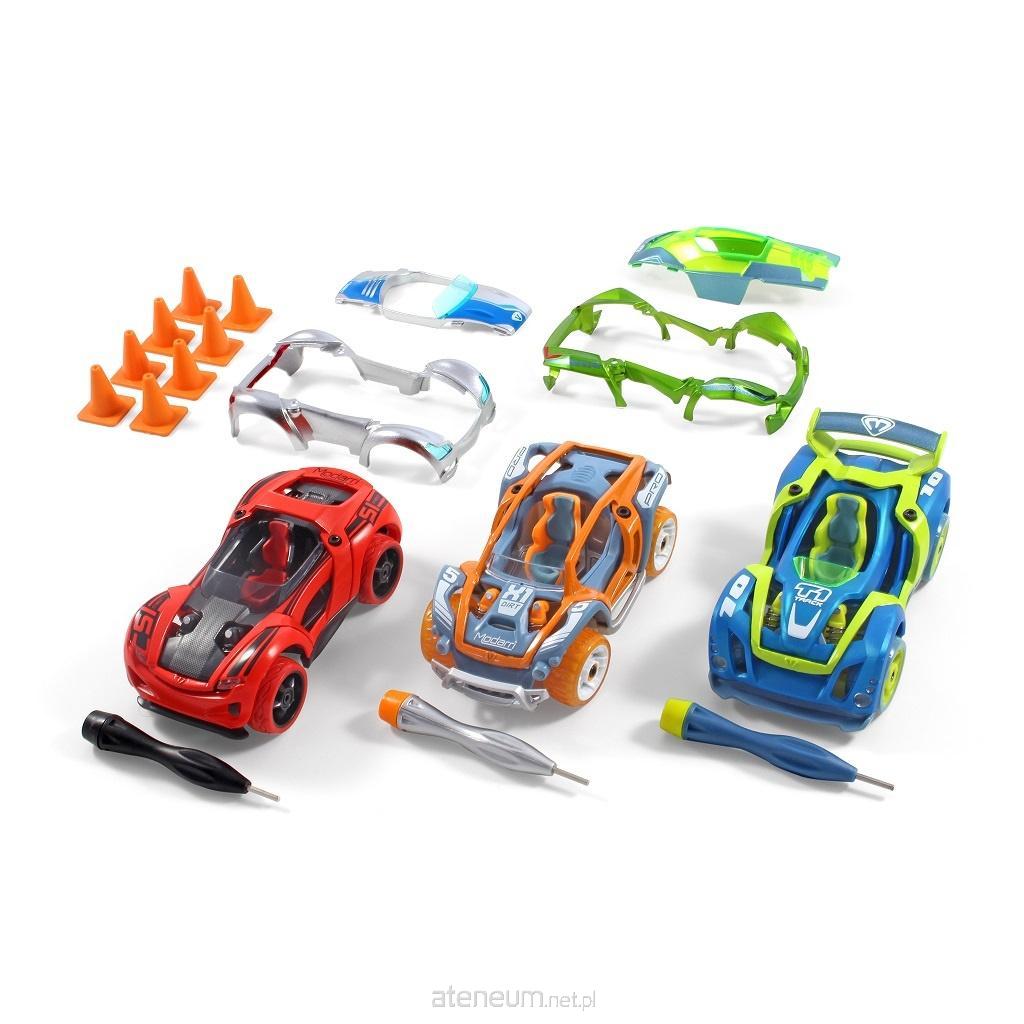 Samochód można łatwo złożyć na 5 różnych sposobów. Części można łączyć z innymi zestawami Modarri, co daje nawet 3 miliony możliwych kombinacji samochodów Modarri. Montaż i demontaż samochodów jest dziecinnie łatwy. Zdjęcia przedstawiają samochodziki Modarri, które są w 3-Paku, oraz auta jakie można stworzyć dzięki wymianie części między samochodami.