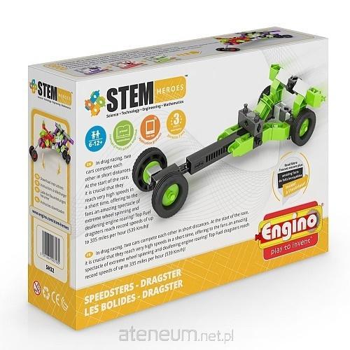 Zestawy klocków STEM Heroes, seria Pojazdy wyścigowe, umożliwiające zbudowanie 1 modelu z każdego zestawu, ulotka informacyjna dotycząca tematyki danego zestawu, bezpłatna aplikacja do ściągnięcia z Internetu. Zestawy łączą się, po zebraniu trzech zestawów można zbudować model combo'.