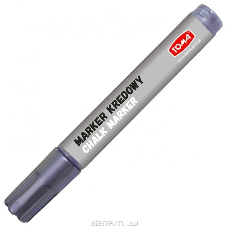 Marker z płynną kredą, do pisania po tablicach czarnych, białych, po szkle i powierzchniach plastikowych. Zmywalny wodą, jak zwykła kreda np. tradycyjną. Nasączalne końcówki fibrowe, bezwonny tusz pigmentowy, nie zawiera xylenu. Końcówka ścięta 4,45 mm, kolor srebrny.