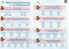 W skład zestawu wchodzi 12 dwustronnych plansz demonstracyjnych z ortografii: