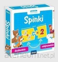 Spinki układanki edukacyjne przeznaczone dla dzieci w wieku przedszkolnym, w których należy skojarzyć odpowiednie elementy i spiąć je w pary. SPINKI składają się z 24 elementów, czyli z 12 par puzzli. SPINKI - dodawanie, odejmowanie: dodajemy lub odejmujemy zwierzątka i dołączamy cyfrę, która jest wynikiem wykonanego działania.