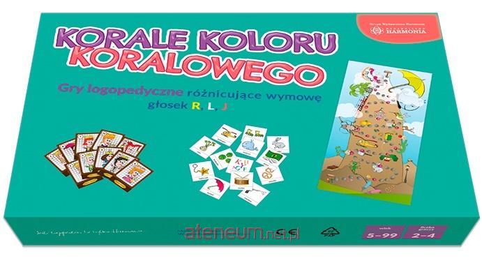 Korale koloru koralowego to publikacja zawierająca gry logopedyczne różnicujące wymowę głosek R, L, J. Zapewni dobrą zabawę nie tylko dzieciom, ale również dorosłym. To doskonała gra dla całej rodziny! W środku znajduje się 5 gier: planszowa Górka Bzdurka superpamięć wyścig Co się zmieniło? Królewski błazen (gra oparta na zasadach Piotrusia).