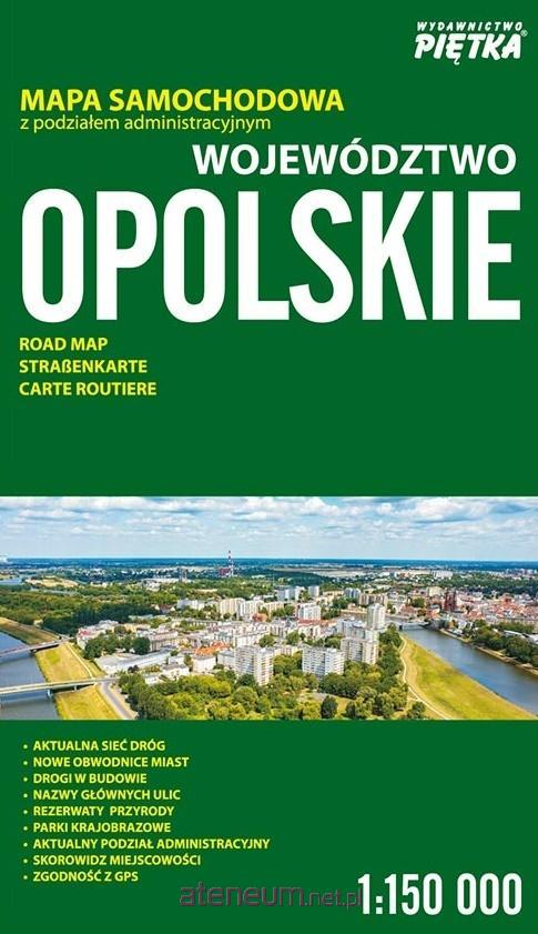 Mapa składana województwa opolskiego administracyjno samochodowa przede wszystkim zawiera aktualny podział administracyjny, z granicami województw miast i gmin, granicami powiatów czy granicami miast na prawach powiatu, ale także naniesiono na niej siedziby urzędów, starostw powiatowych czy siedziby miast i gmin. Niewątpliwą zaletą tej mapy są także aktualne informacje na temat stanu autostrad i dróg wraz z podaną ich numeracją i odległościami w kilometrach. Dodatkowo zamieszczone są też rezerwaty przyrody czy parki narodowe.
