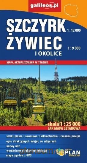 Opracowanie kartograficzne obejmuje obszar od Żywca na wschodzie i południu do Szczyrku na zachodzie, po południowe krańce Bielska - Białej na północy. Na mapie naniesiono informacje przydatne turyście, jak granice obszarów chronionych, zabytki, noclegi, restauracje, kościoły, pałace i inne - szczególnie atrakcyjne miejsca zaznaczono żółtą ramką. W miejscowościach opisano nazwy ulic. Podano aktualne przebiegi szlaków pieszych, rowerowych, narciarskich i konnych, łącznie z kilometrażem i czasem przejścia, co pozwoli łatwiej zaplanować wycieczkę. Zaznaczono wyciągi narciarskie i trasy zjazdowe. Ukształtowanie terenu pokazano przy pomocy warstwic.