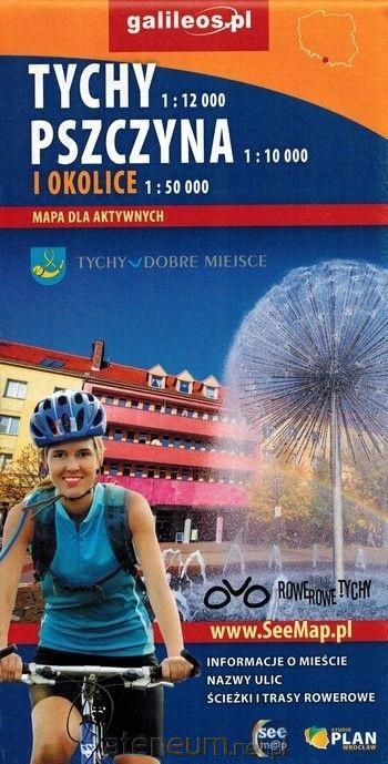 Składana mapa turystyczna Tychów w skali 1:12 000, Pszczyny w skali 1:10 000 oraz okolic w skali 1:50 000.