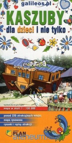 Kaszuby - mapa atrakcji dla dzieci 1:130 000. 1 strona - zawiera mapę Kaszub w skali 1 : 130 000, obejmującą Kaszubski, Wdzydzki i Zaborski Park Krajobrazowy oraz Park Narodowy Bory Tucholskie, oraz ważniejsze miejscowości: Kartuzy, Ostrzyce, Szymbark, Bytów, Kościerzyna, Brusy, Swornegacie, Charzykowy, Chojnice i Człuchów. Na mapie znajdują się miejscowości, drogi asfaltowe i zabytki. Wyróżniono na niej 226 atrakcji, z których część została przedstawiona w postaci rysunków. Znajduje się tu także alfabetyczny spis atrakcji. 2 strona zawiera bogato ilustrowany opis atrakcji Kaszub.