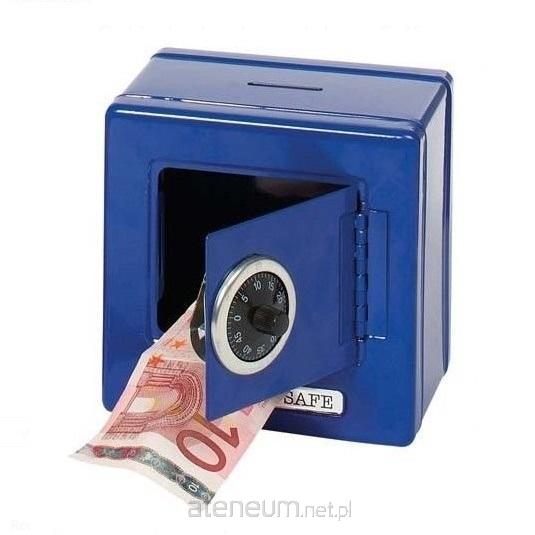 Metalowa skarbonka sejf niebieska.Produkt dopuszczony do obrotu w UE zgodnie z posiadanym certyfikatem CE oraz zgodnością z normą EN-71.