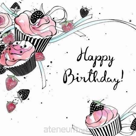 Karnet bez tekstu z kopertą, ręcznie robiony z kryształkiem Swarovski, Urodziny różowe babeczki.