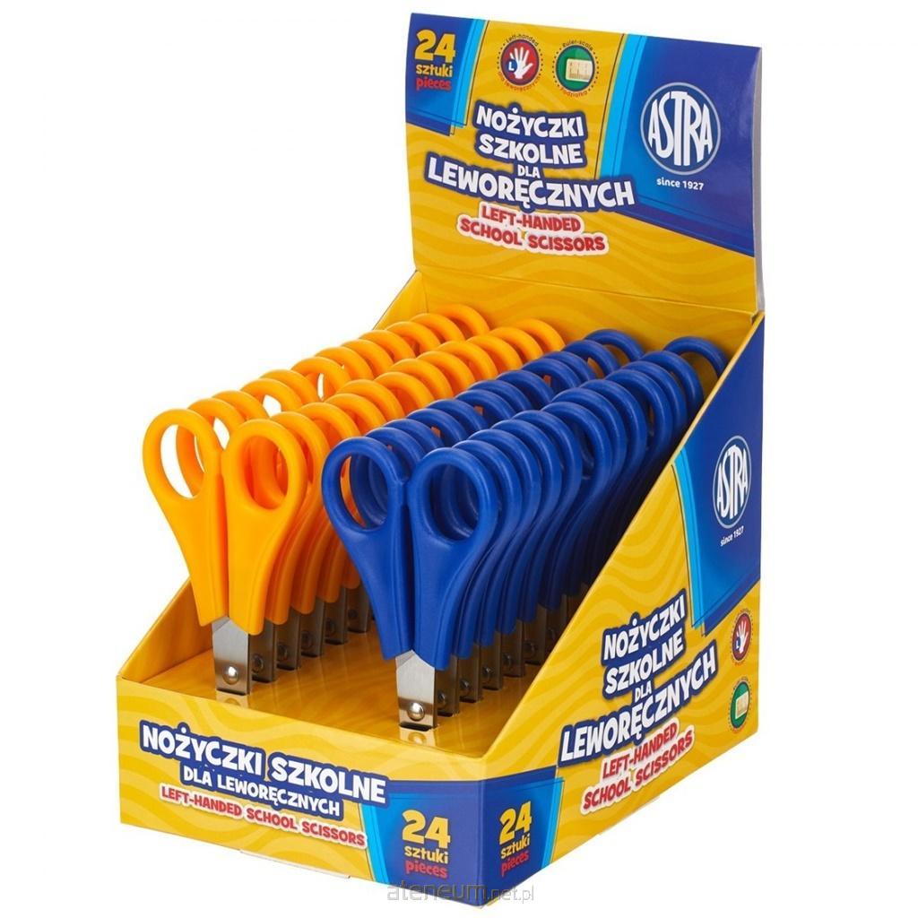 Nożyczki szkolne dla leworęcznych ASTRA.Opakowanie zbiorcze zawiera 24 sztuki.