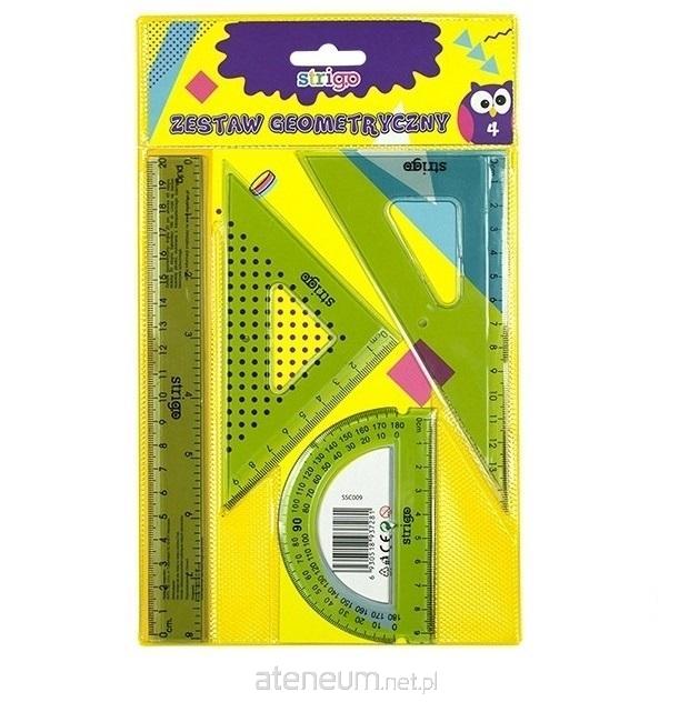 Zestaw geometryczny: linijka 20 cm, ekierka 45 stopni, ekierka 60 stopni, kątomierz 180 stopni.Linijki są bardzo wysokiej jakości, wykonane z transparentnego czarnego tworzywa sztucznego.