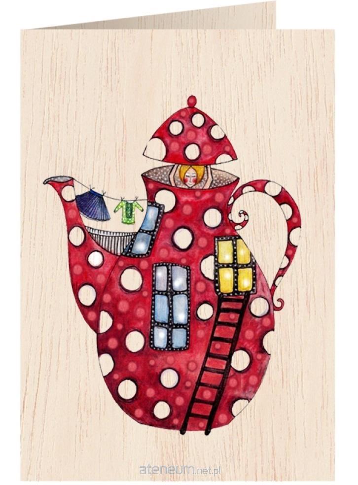 Karnet drewniany C6 + koperta Kobieta ze słoikiem
