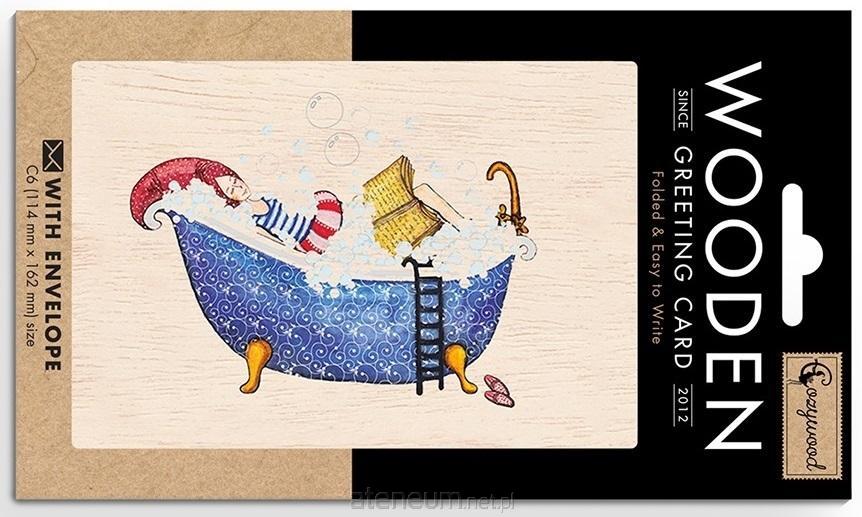 Karnet drewniany C6 + koperta Kobieta z żabą